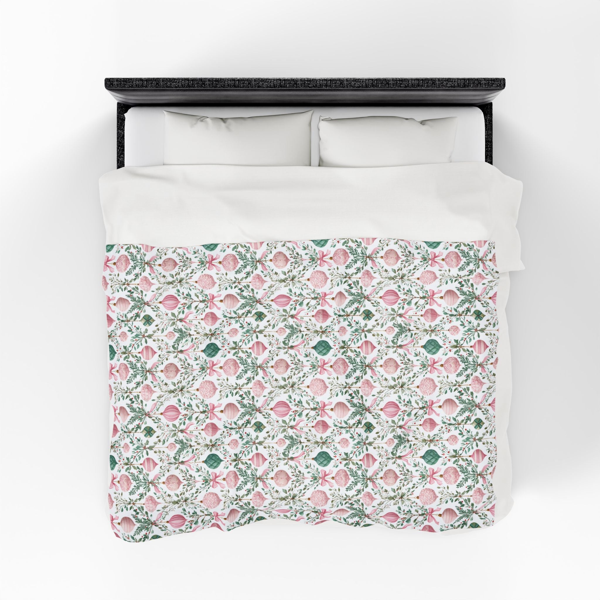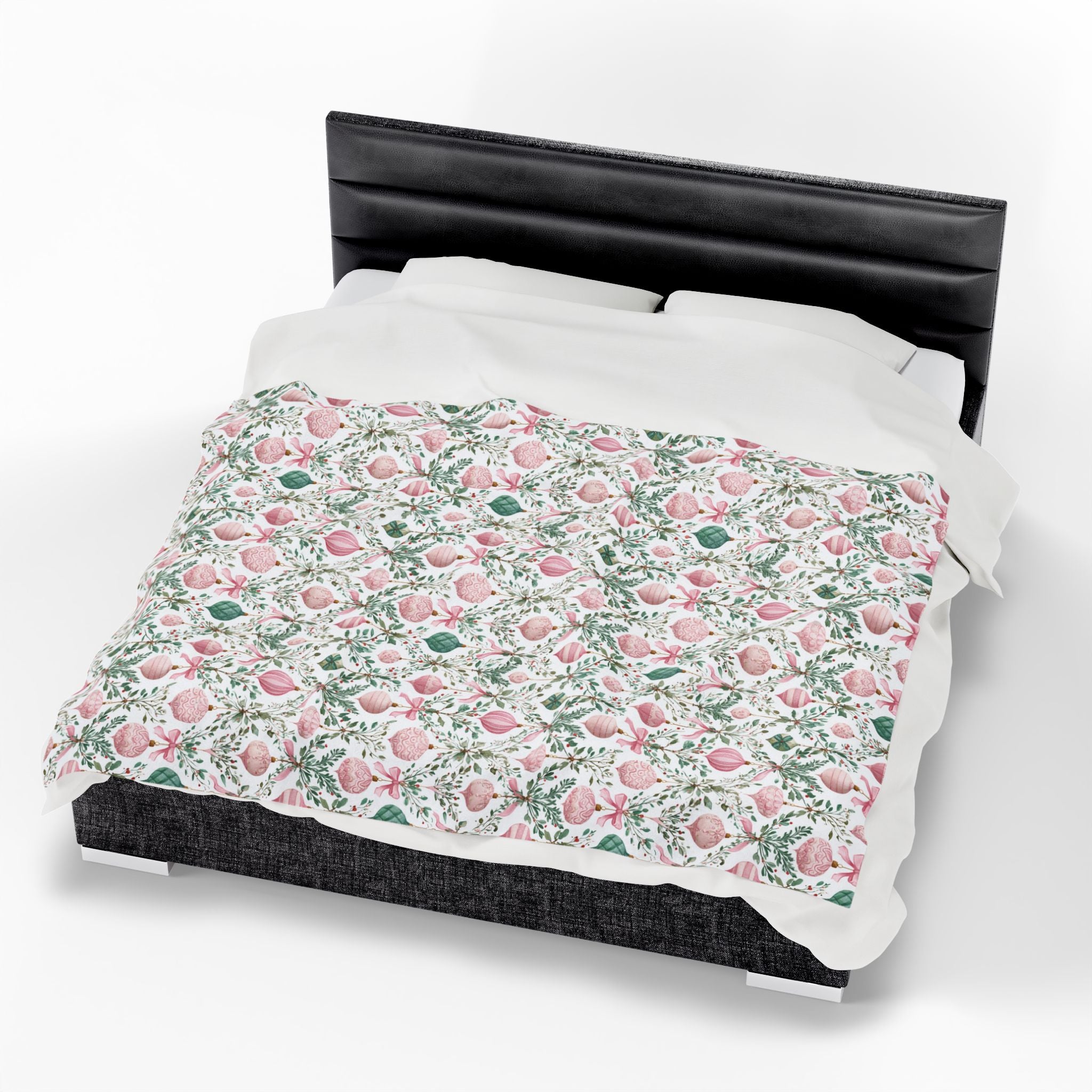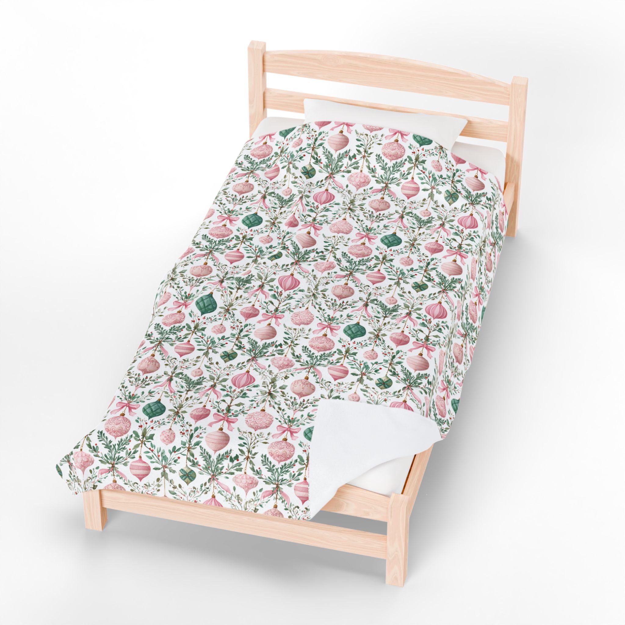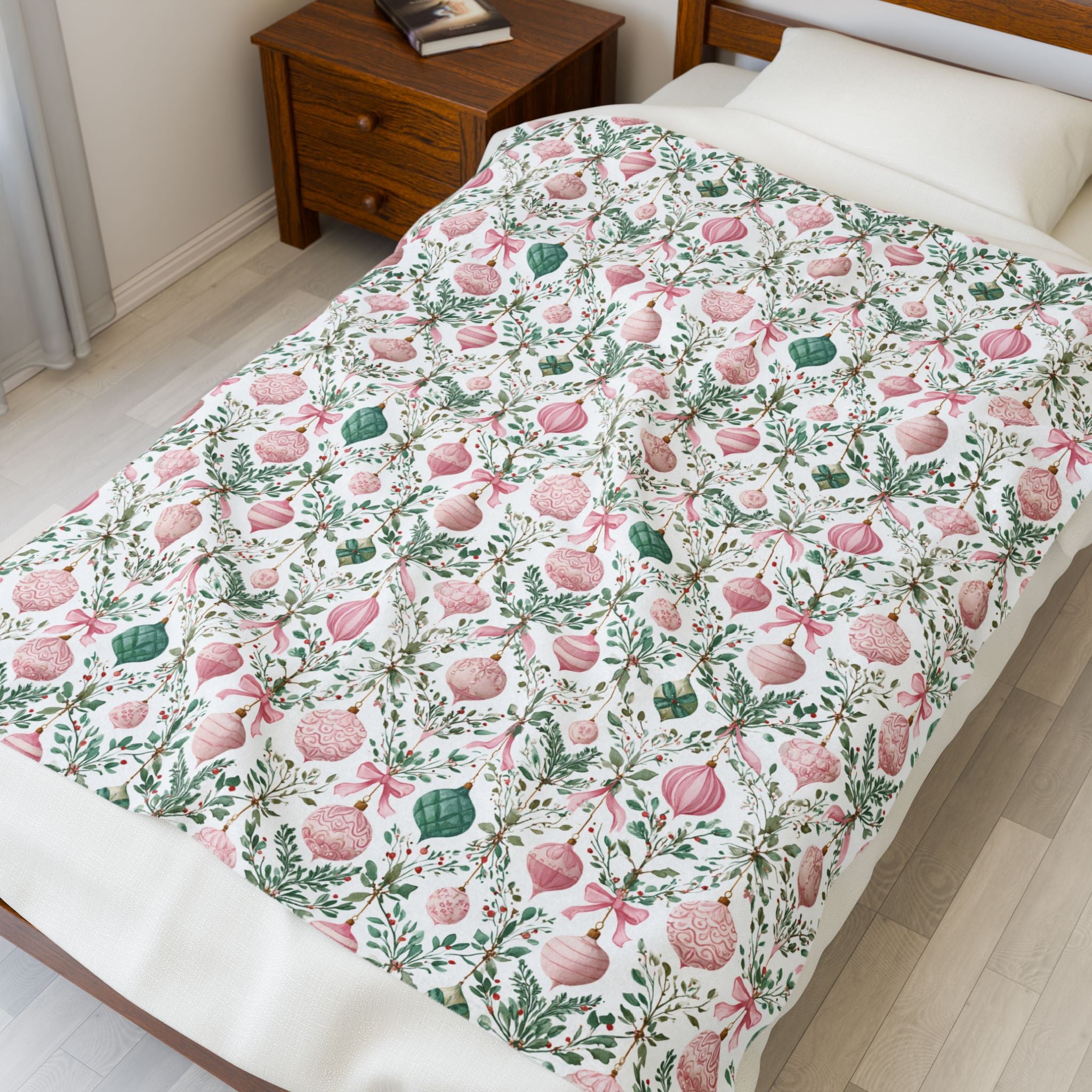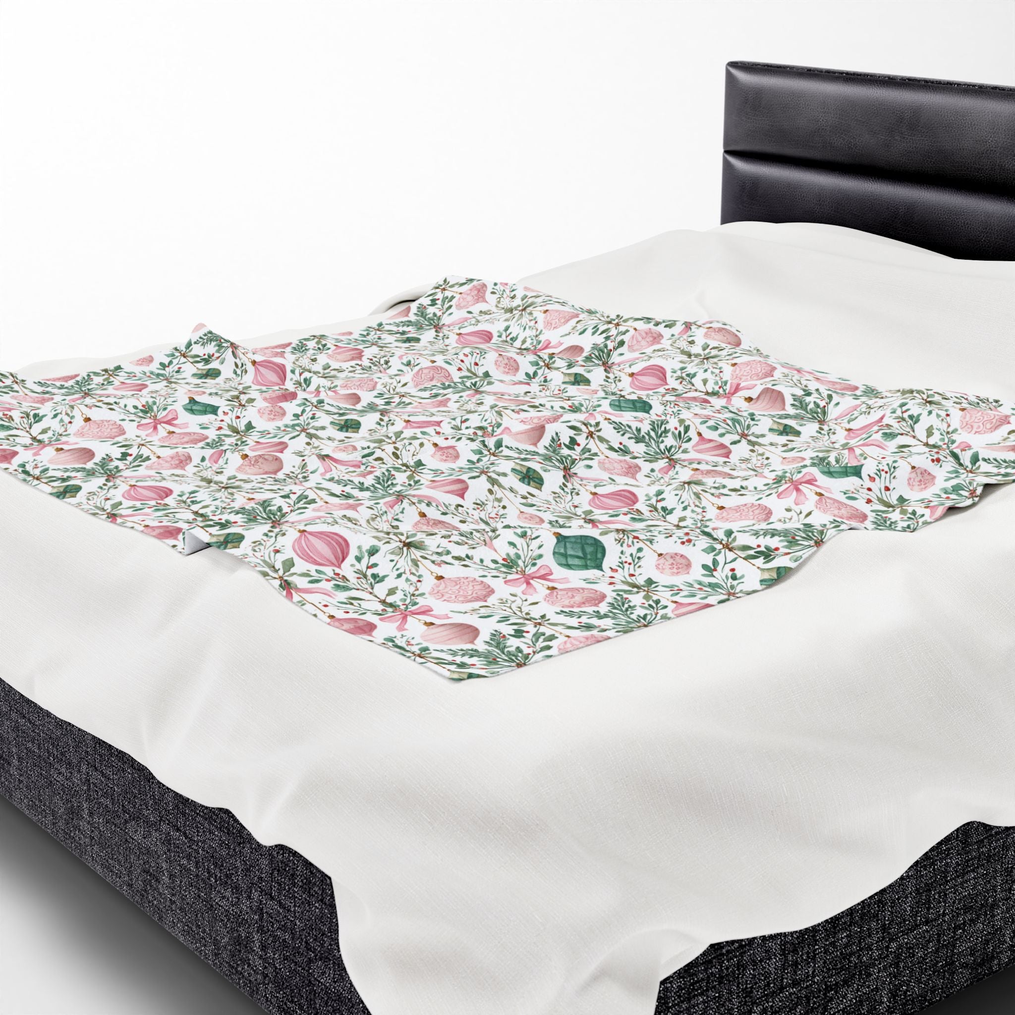 Cozy Velveteen Plush Blanket for Home, Soft Decorative Throw, Ideal Gift for Holidays & Celebrations, Luxe Comforter- Holiday Ornaments. Perfect for adults looking for a cozy and decorative addition to their home during the holiday season.