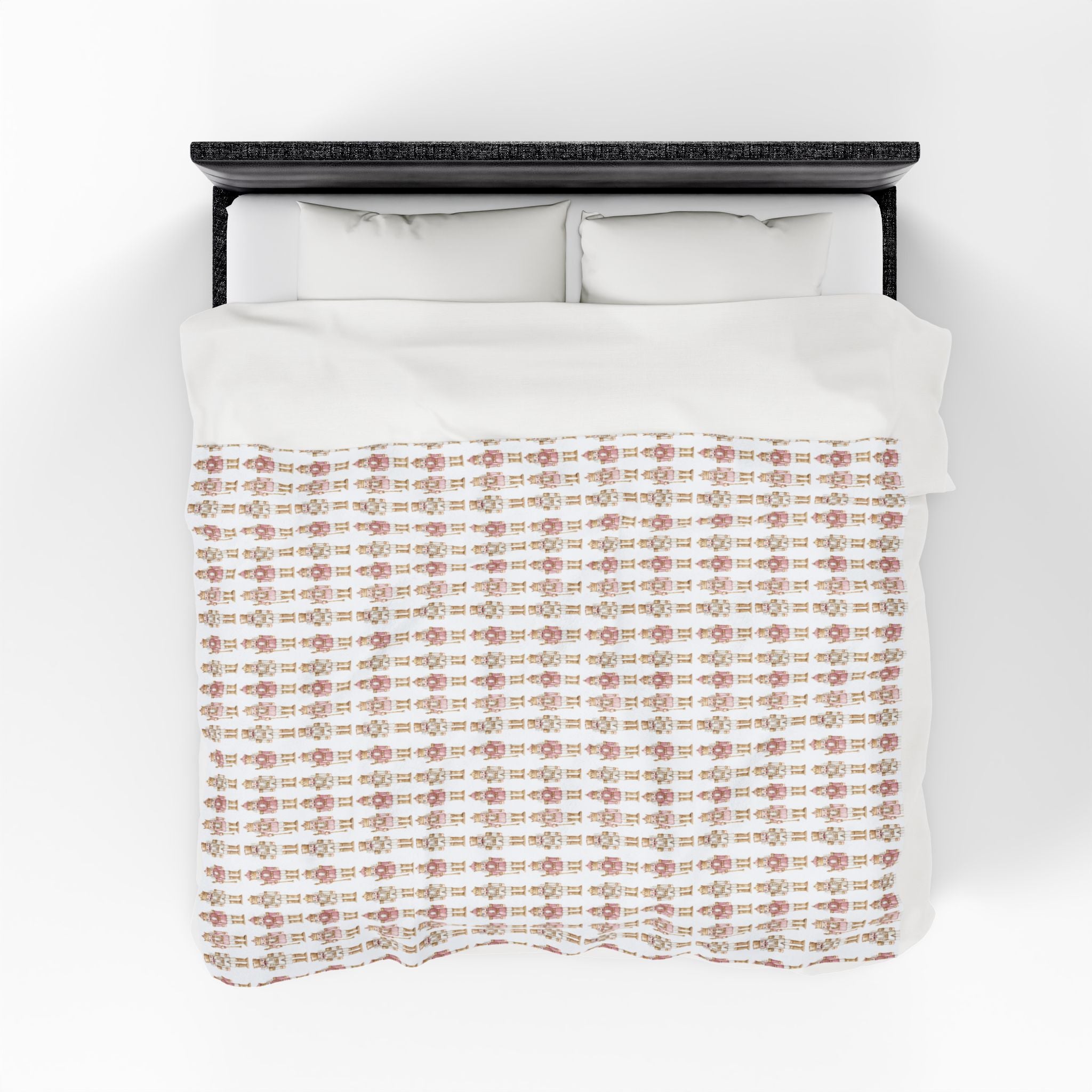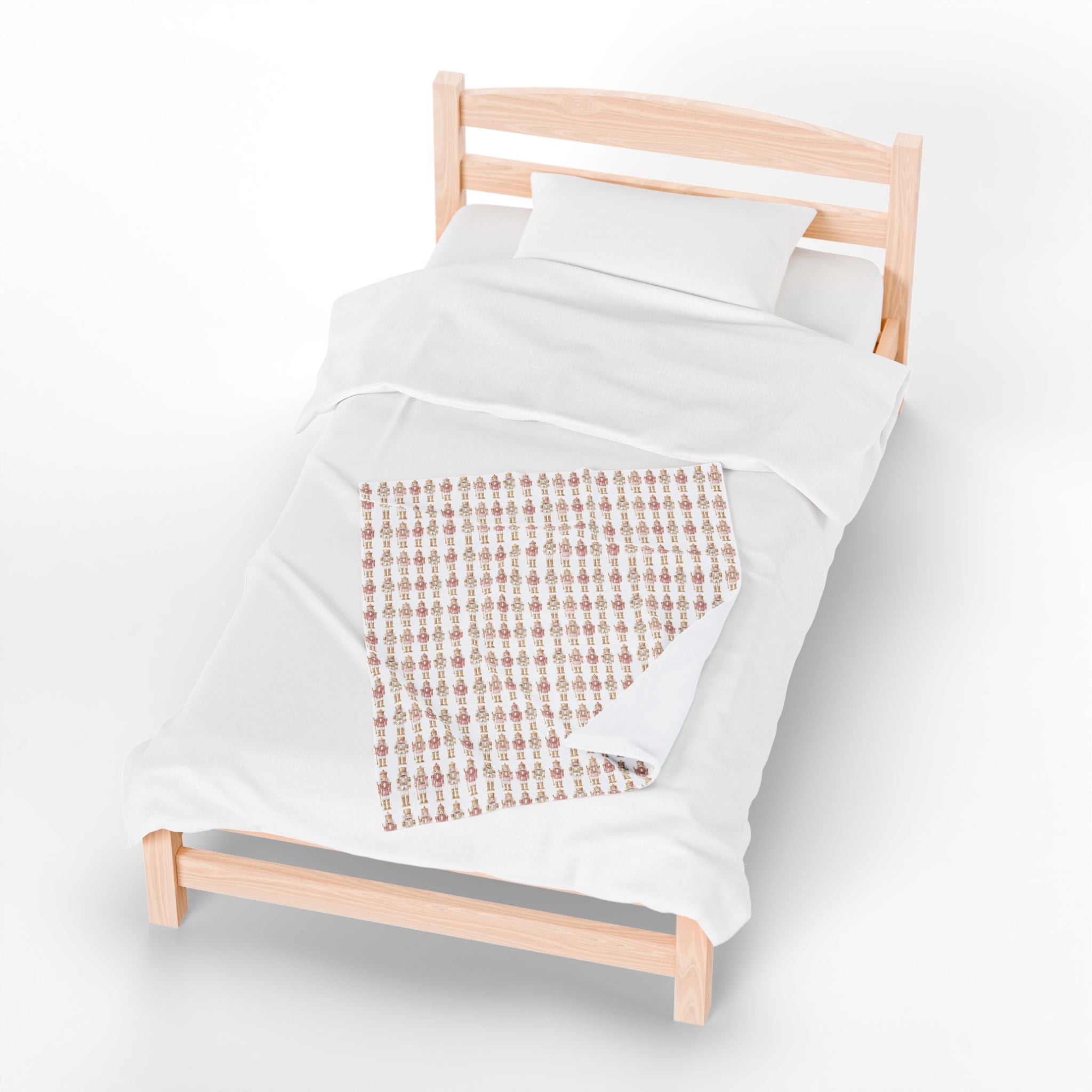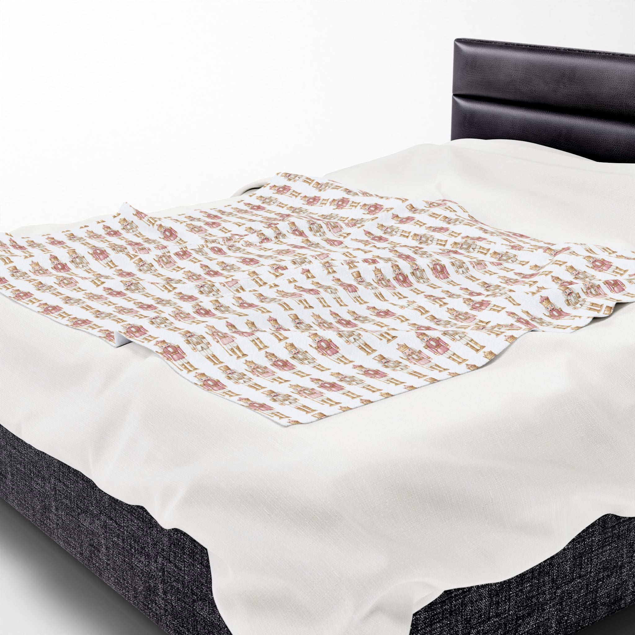 Cozy Velveteen Plush Blanket, soft throw blanket perfect for gifts, nursery decor, and winter comfort. Features a Nutcracker pattern design that adds a touch of whimsy and coziness to any space. Ideal for adults looking for a warm and stylish addition to their home during the holiday season.